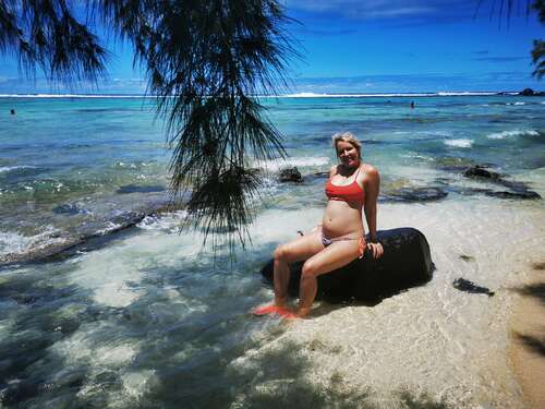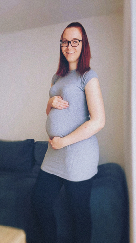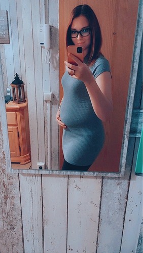 Hab mal ein Bild raus gesucht. Das ist momentan mein Bauch, ich kann nur noch Leggins und weite Pullis anziehen oder Umstandsmode. Alles andere drückt zu sehr oder passt nicht mehr.