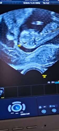 Unser Mäuschen hat total rumgeturnt während der Untersuchung 😍 es hat sich an der Gebärmutter abgedrückt und ist rumgehupft und auch in die Luft geboxt, es war einfach herrlich zuzuschauen. Unser ET wurde 10 Tage vorverlegt 😁😁❤️ sind sehr happy. Hoffe nur noch der NIPT ist unauffällig 🙏